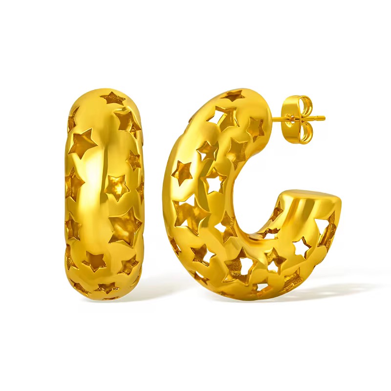 Balencia hoops — crafted from high-quality stainless steel with luxurious 18k gold plating. Designed to be anti-tarnish, waterproof, and hypoallergenic, making it perfect for comfortable, long-lasting wear.
