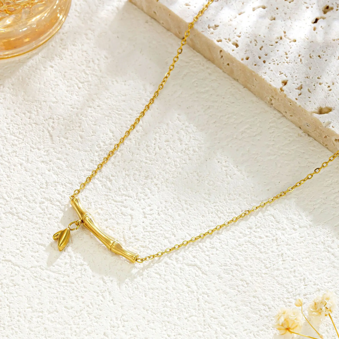 Bamboo mini necklace — crafted from high-quality stainless steel with luxurious 18k gold plating. Designed to be anti-tarnish, waterproof, and hypoallergenic, making it perfect for comfortable, long-lasting wear.