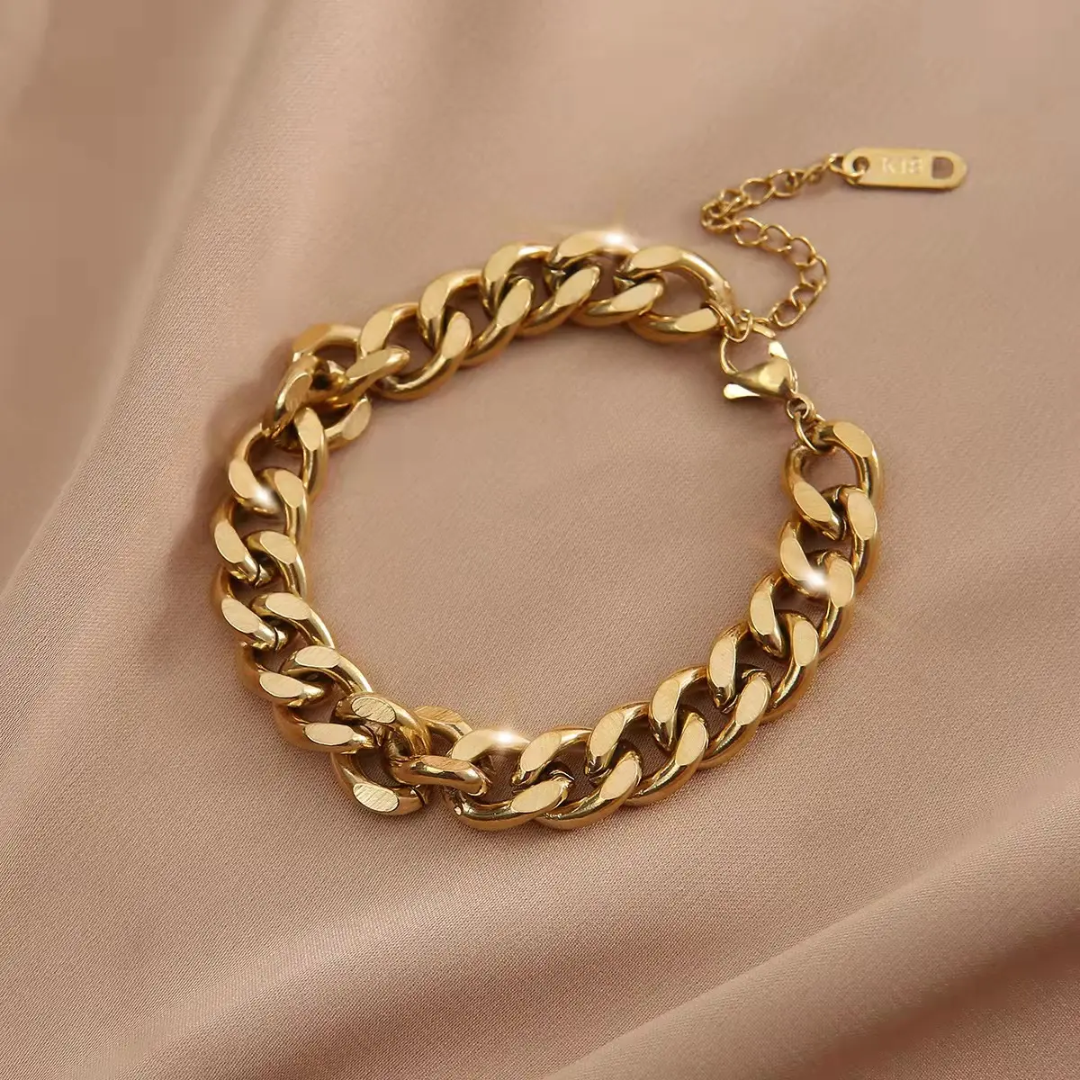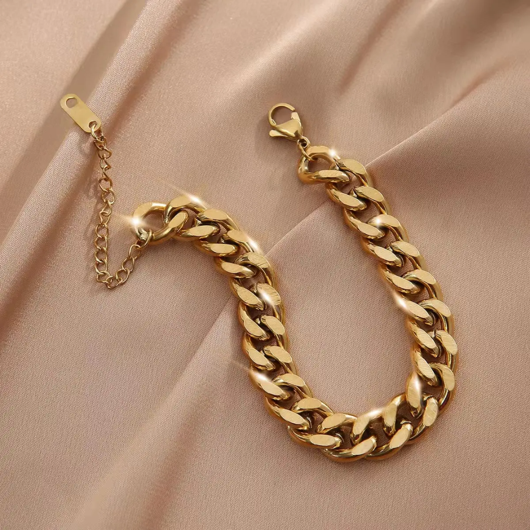 Cuban daily wear bracelet — crafted from high-quality stainless steel with luxurious 18k gold plating. Designed to be anti-tarnish, waterproof, and hypoallergenic, making it perfect for comfortable, long-lasting wear.