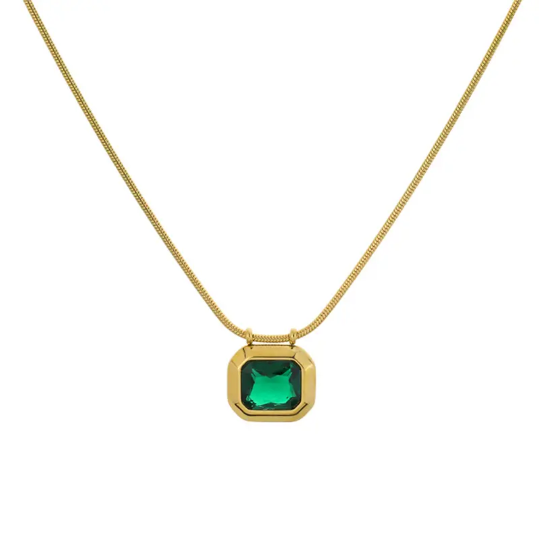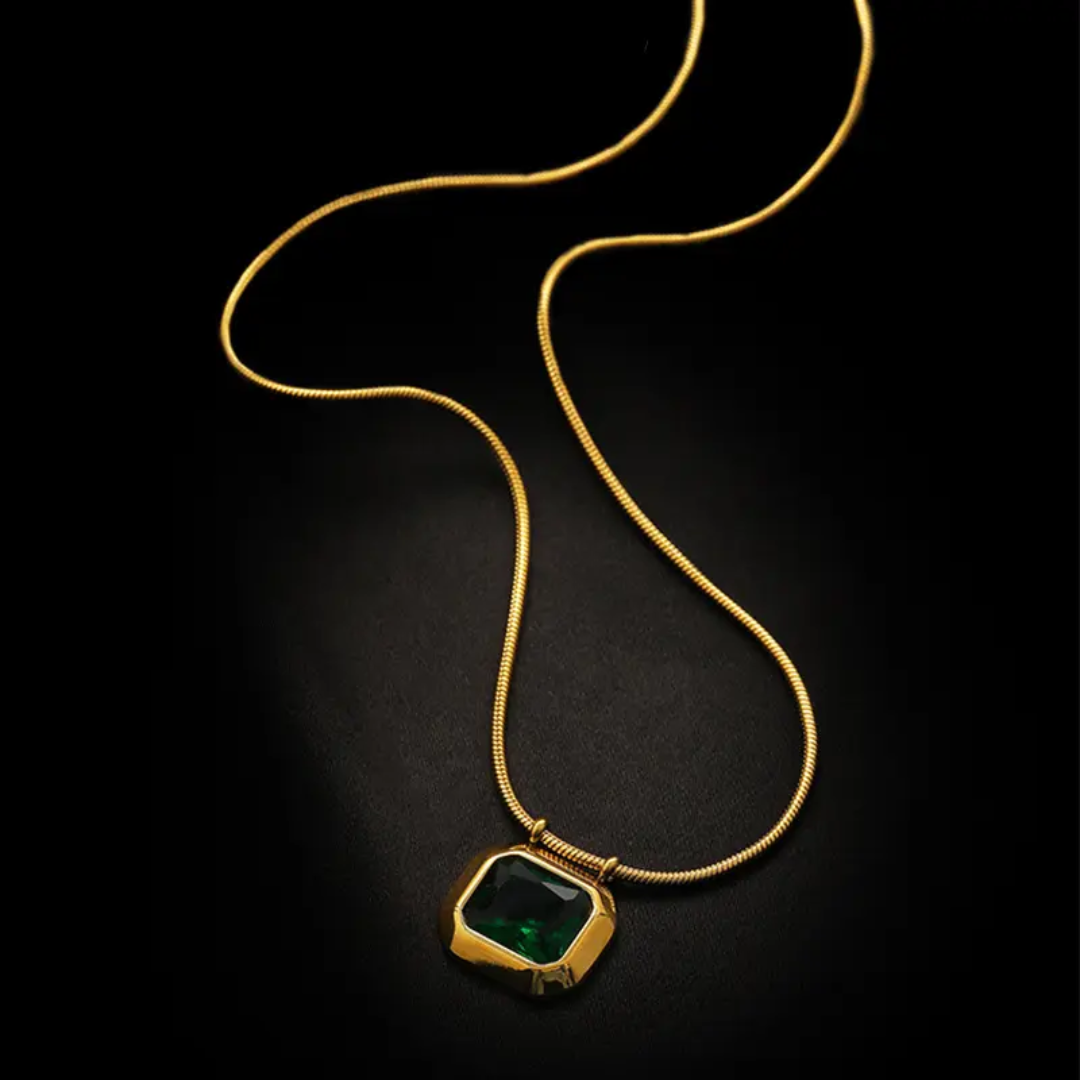 Emerald bold necklace — crafted from high-quality stainless steel with luxurious 18k gold plating. Designed to be anti-tarnish, waterproof, and hypoallergenic, making it perfect for comfortable, long-lasting wear.