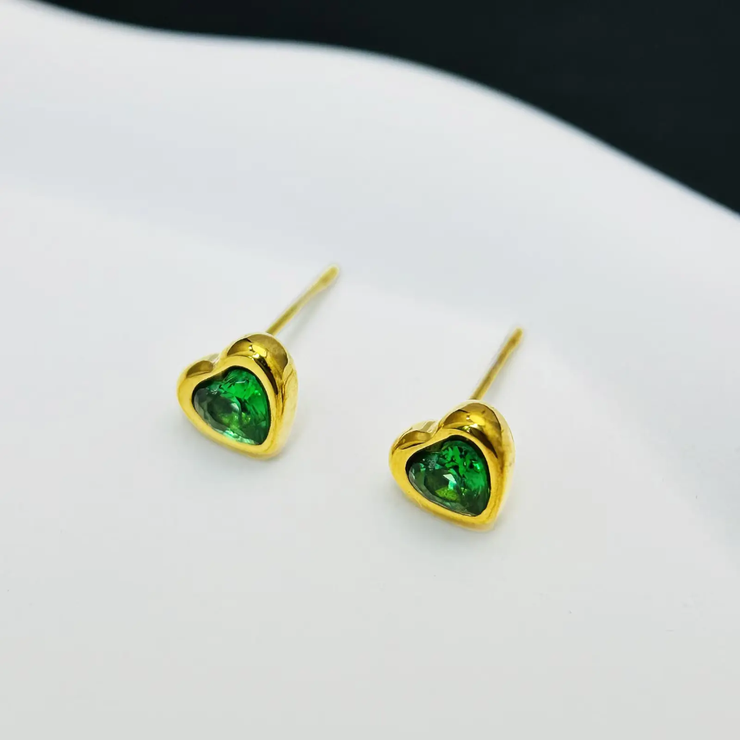 Emerald Retro Sweet heart studs