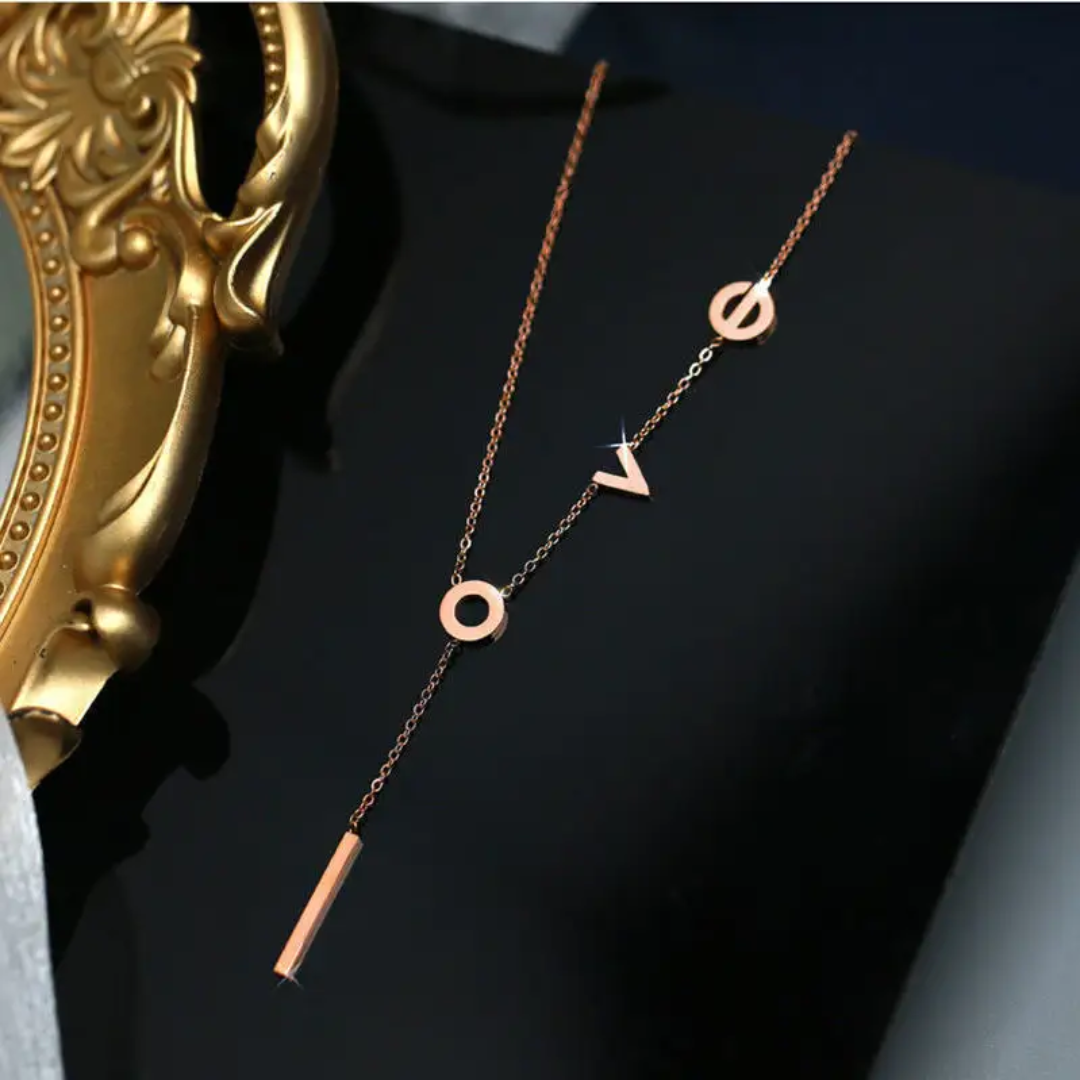 Love letter necklace-Rose gold — crafted from high-quality stainless steel with luxurious 18k gold plating. Designed to be anti-tarnish, waterproof, and hypoallergenic, making it perfect for comfortable, long-lasting wear.