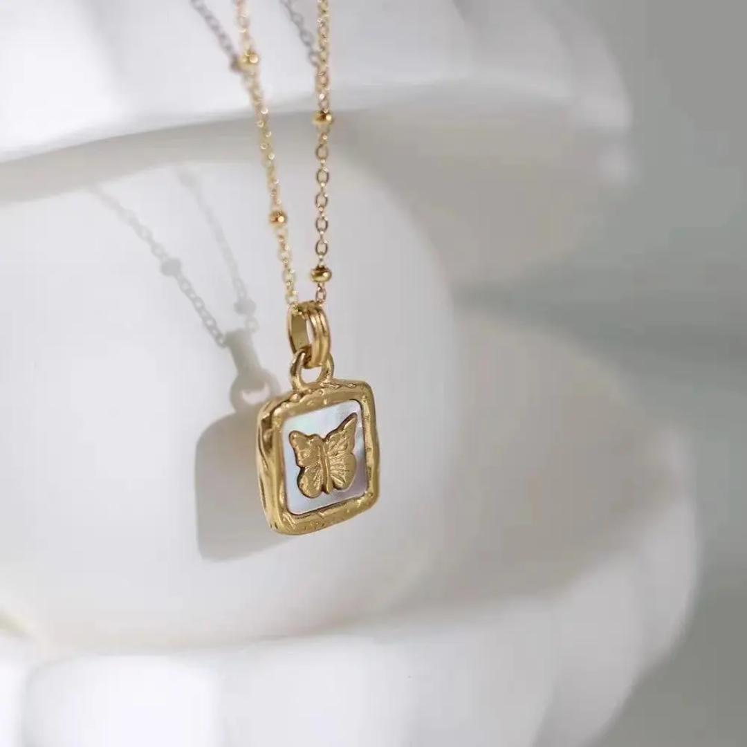 Pearl Butterfly Necklace silver — crafted from high-quality stainless steel with luxurious 18k gold plating. Designed to be anti-tarnish, waterproof, and hypoallergenic, making it perfect for comfortable, long-lasting wear.