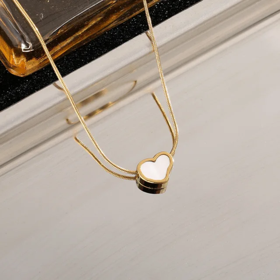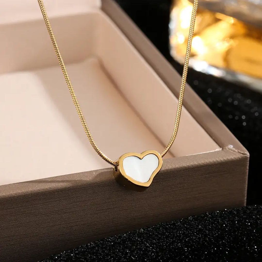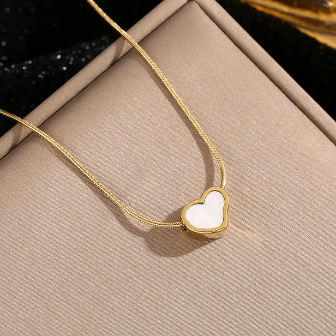 Pearl heart necklace — crafted from high-quality stainless steel with luxurious 18k gold plating. Designed to be anti-tarnish, waterproof, and hypoallergenic, making it perfect for comfortable, long-lasting wear.