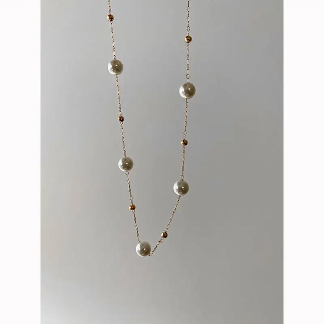 Pearl sequence necklace — crafted from high-quality stainless steel with luxurious 18k gold plating. Designed to be anti-tarnish, waterproof, and hypoallergenic, making it perfect for comfortable, long-lasting wear.