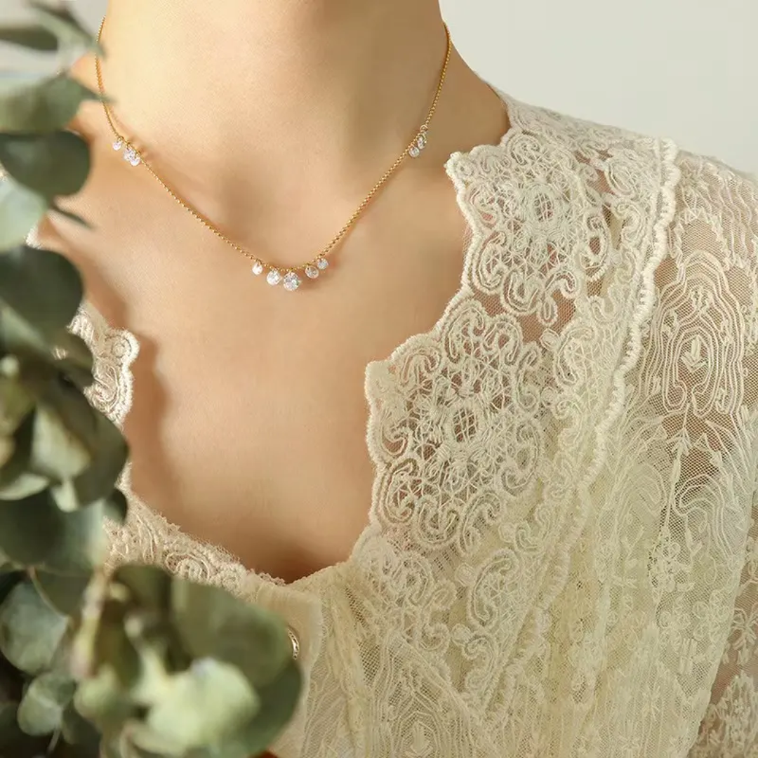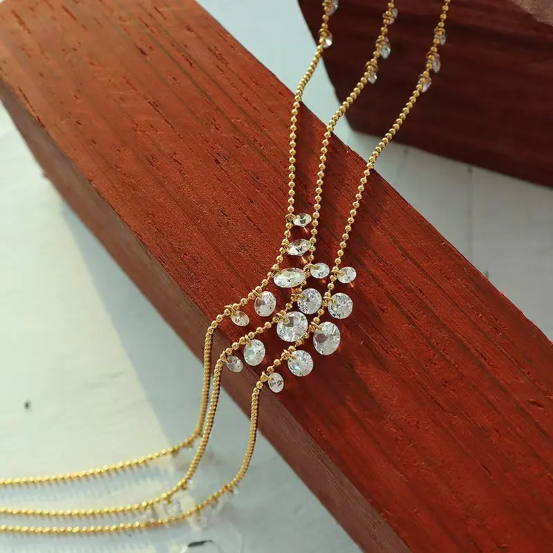 Premium white diamond tassel necklace (Copy) — crafted from high-quality stainless steel with luxurious 18k gold plating. Designed to be anti-tarnish, waterproof, and hypoallergenic, making it perfect for comfortable, long-lasting wear.