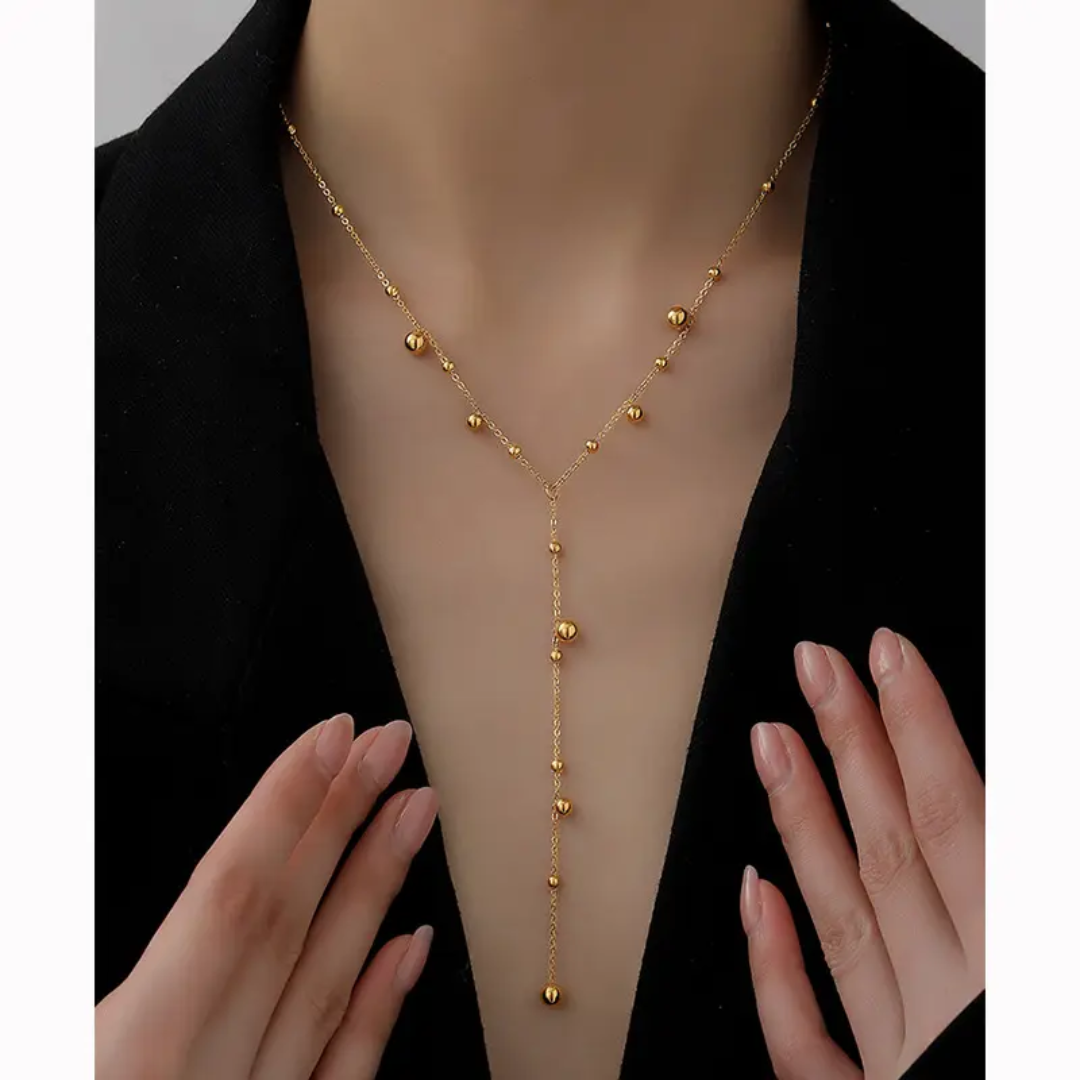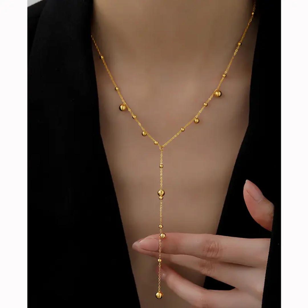 Tassel round drop necklace — crafted from high-quality stainless steel with luxurious 18k gold plating. Designed to be anti-tarnish, waterproof, and hypoallergenic, making it perfect for comfortable, long-lasting wear.